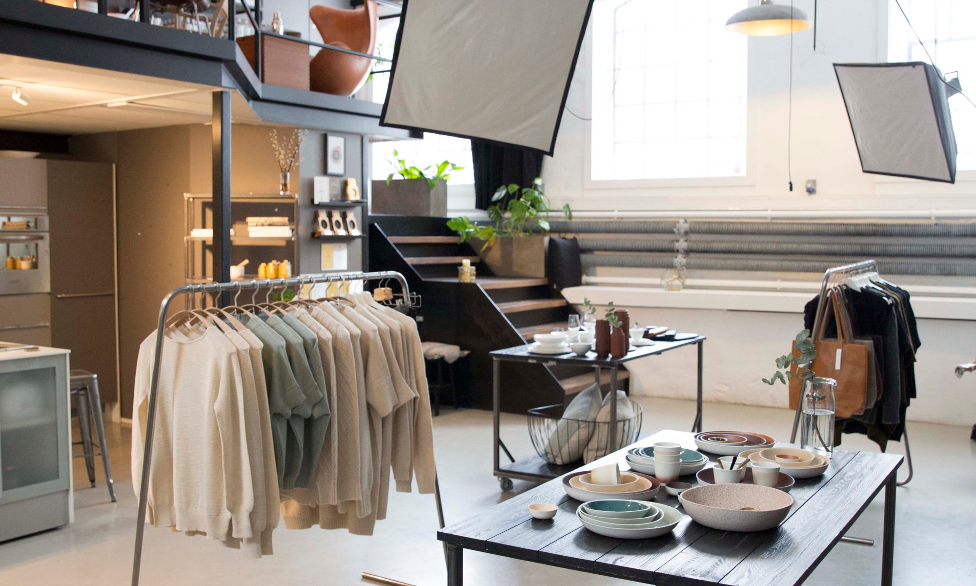 Studioet består av tre separate studioer med hver sine fortrinn. Kjøkkenet er beregnet for to team med kokker og arbeidsstasjoner hvor de kan jobbe separat med alt av nødvendig kjøkkenutstyr. I studioet har vi også et showroom med tilhørende nettbutikk http://www.vaarbutikk.no